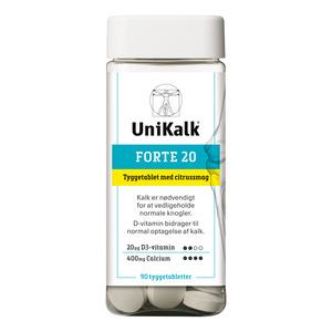 UniKalk Forte indeholder både calcium og D-vitamin. Behovet for et ekstra højt tilskud af D-vitamin kan opstå af flere årsager. Hvis man er mere end 60 år, er behovet for at indtage et ekstra tilskud af D-vitamin meget større. Dette er gældende for begge køn. Ligeledes kan det med alderen knibe med at komme ud i solen eller spise de samme mængder mad som tidligere, hvilket er med til at begrænse de mængder kalk og D-vitamin, som normalt tilføres gennem kosten.