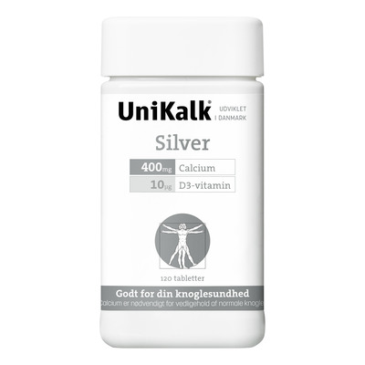 Silver-tabletterne fra UniKalk er til dig, som ønsker at supplere din daglige kost med både kalk og D-vitamin. Med et indhold på 10 µg D-vitamin pr. tablet er UniKalk Silver derfor med til at dække et øget behov for D-vitamin i forbindelse med kalk.
