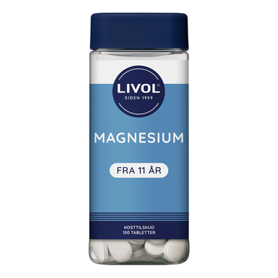Livol Magnesium er et kosttilskud med magnesium, der bidrager til en normal muskelfunktion, nervesystem og energistofskifte samt med at mindske træthed og udmattelse. Magnesium hjælper derudover også til vedligeholdelsen af normale knogler og tænder.