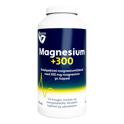 Biosym Magnesium +300 er et bredspektret magnesiumtilskud af højeste kvalitet. Magnesium +300 indeholder 300 mg magnesium i én kapsel fra to magnesiumkilder i form af magnesium L-pidolat og magnesiumoxid. Brugen af de to magnesiumkilder giver en bredspektret effekt, da de to typer af magnesium komplementerer hinanden og optages ved forskellig PH og forskellige steder i tarmen, hvilket sikrer en optimal optagelighed.