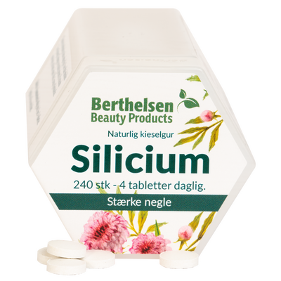 Dette kosttilskud fra Berthelsen er fremstillet af organisk silicium fra kieselgur. Kieselgur er en naturlig forekomst af forstenede marine alger, som findes i jorden i Afrika, Nordamerika og Europa. Silicium er et mineral, der både findes i naturen og vores krop. I kroppen findes det hovedsageligt i væv, der behøver en særligt stærk struktur - det kan eksempelvis være negle, hår, hud og tænder.