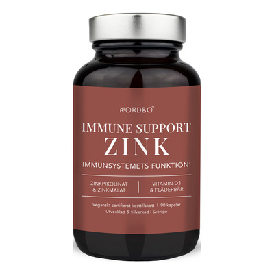 NORDBO Immune Support Zinc er et kosttilskud udviklet med fokus på immunsystemets normale funktion. Det indeholder zinkpikolinat og zinkmalat, som begge er kendt for deres høje biotilgængelighed. Hver kapsel indeholder 25 mg zink samt vitamin D3 og sort hyldebærekstrakt. Zink og vitamin D bidrager til immunsystemets normale funktion. Zink bidrager desuden til at beskytte cellerne mod oxidativt stress.
