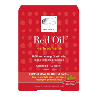 Red Oil™ er en rig kilde til EPA og DHA, der bidrager til en normal hjertefunktion*. Det høje indhold af DHA bidrager til en normal hjernefunktion og et normalt syn**. I modsætning til omega 3 fra fiskeolie, er krill omega 3 bundet i en fosforlipid form. Omega 3 i denne form inkorporeres mere effektivt i kroppens cellemembraner end triglycerider fra fiskeolie. Krill olien indeholder fra naturens side antioxidanten astaxanthin. Den modvirker harskning af olien og holder den frisk længere, samtidig med at den giver olien dens karakteristiske naturlige røde farve. Red Oil kapslen er fremstillet med en ny indkapslingsteknologi, der gør den total lugtfri. Red Oil's vandopløslige form betyder desuden, at olien hurtigt opløses i maven, så den velkendte ”fiskebøvs“ undgås. Red Oil kapslen er lille, rød og kraftfuld.