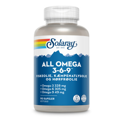 Solaray All Omega 3-6-9 - unik kombination af fiskeolie og planteolier fra hhv. kæmpenatlys og hørfrø