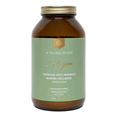 A Pure Mind Premium Anti-Wrinkle Marine Collagen er et kollagenpulver med kollagen udvundet fra marine kilder (fisk), som er et fuldt opløseligt og smagsneutralt. Verisol® kollagenet har en unik lav molekylevægt på 2000 dalton (2kDa), hvilket opnås ved en patenteret hydrolyseringsmetode. Den lave molekylevægt er med til at gøre det nemmere for kroppen at optage kollagenpeptiderne til dannelse af ny kollagen i huden. Kollagenpulveret er udvundet fra fisk og består udelukkende af type-1 kollagen, som findes naturligt i huden. Dette kollagenpulver kan også anvendes af vegetarer.