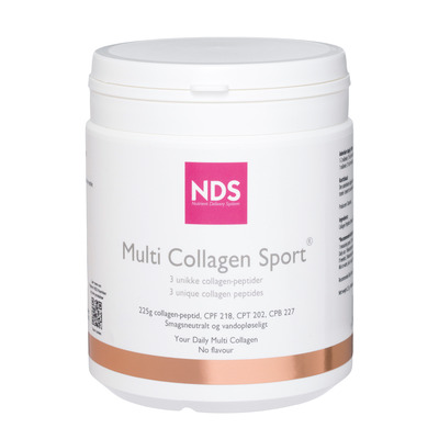 NDS Multi Collagen Sport er dit daglige tilskud af kollagen og indeholder tre forskellige former for kollagen (CPF 218, CPT 202 og CPB 227), som er målrettede og rammer direkte, hvor behovet er. Med dette produkt får du tilført de korrekte kollagen-peptider i effektive og veldokumenterede doser.