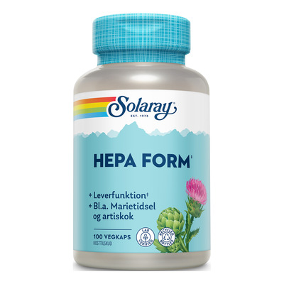 Solaray Hepa Form er et kosttilskud i kapselform, der indeholder mælkebøtte, marietidsel og artiskok, der støtter leverens funktion. Derudover støtter marietidsel, artiskok og pebermynte en normal fordøjelse. Tilskuddet indeholder også kelp og burre.