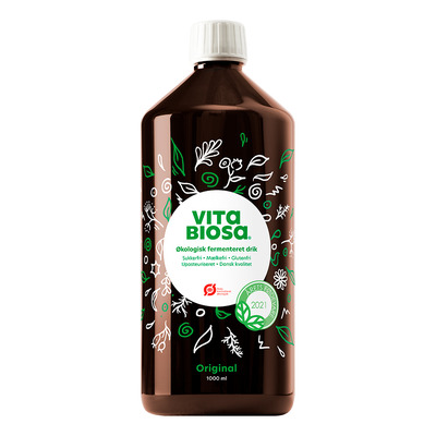 Vita Biosa Orginal Ø er en økologisk urtedrik med millioner af levende mælkesyrebakterier, og med smag af urter.