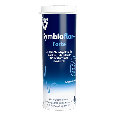 Biosym Symbioflor+ Forte indeholder hele 24 mia. garanterede, levedygtige mælkesyrebakterier pr. dagsdosis selv på udløbstidspunktet (48 mia. på fremstillingstidspunktet ved 2 kapsler) fra 12 forskellige og nøje udvalgte mælkesyrebakteriestammer. Ydermere indeholder det fructo-oligosakkarider og zink i effektiv kombination. Kosttilskuddet kan anvendes som et hverdagsprodukt eller til perioder, hvor tarmfloraen kan være udfordret, såsom efter antibiotikabehandling, til rejse eller som kur. Præparatet er særligt udviklet til de nordiske behov, med fokus på velvære i mave- og tarmsystemet samt til understøttelse af immunsystemet.