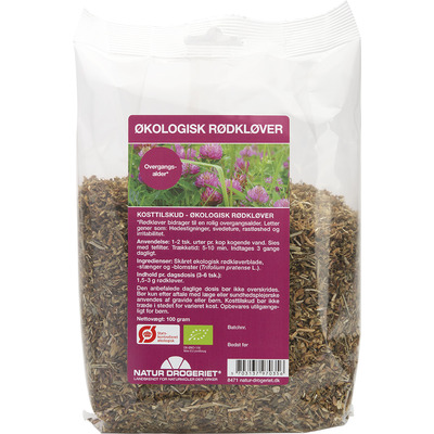 Natur-Drogeriets Rødkløver Ø 100 g. er både økologisk, vegetarisk og vegansk.