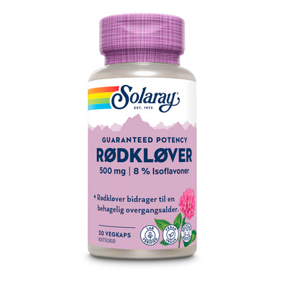 Solaray Rødkløver er et kosttilskud med standardiseret rødkløverekstrakt og 8% isoflavoner