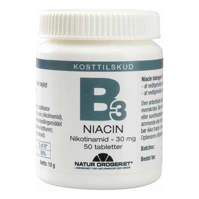 Natur-Drogeriet B3 Niacin 30 mg er et kosttilskud til dig, der ikke får tilstrækkeligt med vitamin B3 gennem kosten