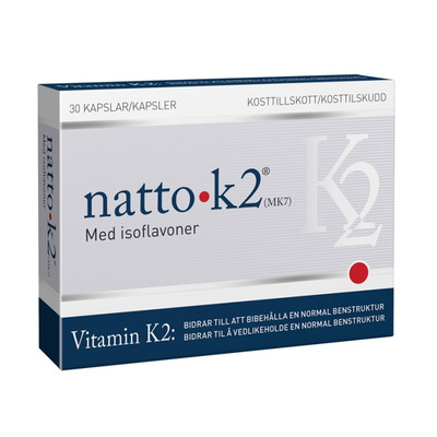 Natto k2 indeholder foruden K2 vitamin også natlysolie, isoflavoner og nattoekstrakt.