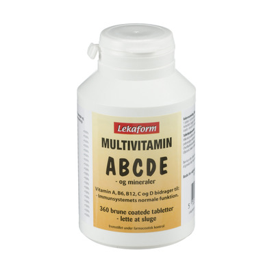 Lekaform Multivitamin indeholder både vitamin A, B, C, D og E samt flere mineraler. De er overfladebehandlet, så de er lette at sluge. Vitamin A, B6, B12, C og D bidrager bl.a. til immunsystemets normale funktion.