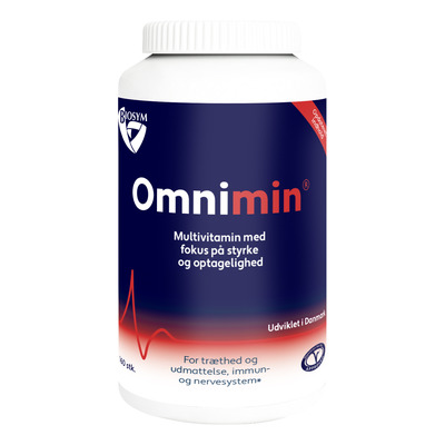 Omnimin har været på markedet i mere end 35 år og er en af Biosyms klassikere. Omnimin er et multivitamin, der er ideel til dig, som ønsker et bredt og alsidigt tilskud med hele 27 essentielle vitaminer, mineraler, antioxidanter og næringsstoffer af topkvalitet. Biosym har et ønske om at sikre den bedst mulige kvalitet og optagelighed, derfor har de fokus på styrke, optagelighed og kvalitet, hvorfor indholdet af de enkelte næringsstoffer ofte overstiger 100% RI, der er en form for minimumsværdi. Biosym har en filosofi omkring Optimal Daglig Tilførsel, hvorfor deres tilskud ofte er højere end andre tilskud, som indeholder 100% RI.