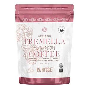 Rå Hygge Mushroom Coffee Tremella/Maitake Filtermalet Ø er en økologisk specialkaffe baseret på Arabica bønner tilsat Snow Fungus (Tremella) og Maitake-svampeekstrakt. Kaffen har en lidt mørkere ristning, der giver en dybere og fyldig smag. Med en pH-værdi på 6,5 er kaffen lavsyrlig og skånsom for maven takket være den patenterede efterbehandling. Den unikke blanding forener høj kvalitet med en spændende umami-smagsprofil.