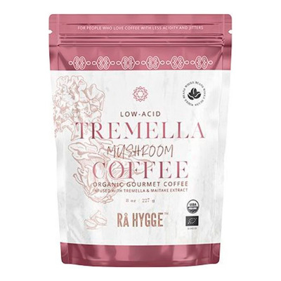 Rå Hygge Mushroom Coffee Tremella/Maitake Hele bønner Ø er en økologisk specialkaffe med Snow Fungus (Tremella) og Maitake-svampeekstrakt. Denne mørkere ristede kaffe er lavsyrlig med en pH-værdi på 6,5, hvilket gør den skånsom for maven. Den patenterede efterbehandling sikrer en afbalanceret og fyldig smag, som tiltaler dem, der foretrækker en intens kaffeoplevelse. Svampeekstrakterne giver kaffen en unik og karakteristisk umami-smag.