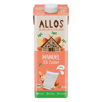 Allos Mandel Drink - Mandeldrik med mild, nøddeagtig smag, som er yderst velegnet til f.eks. bagning, smoothies og til at hælde over morgenmaden. Smager også fremragende i kaffen og kan i det hele taget med fordel bruges hvor du ellers ville bruge mælk.