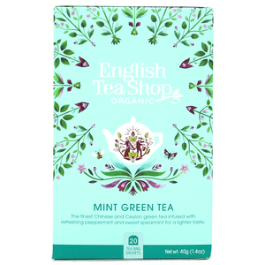 Mint Green Tea fra English Tea Shop er en skøn, økologisk teblanding baseret på grøn te tilsat et friskt twist af mynte og pebermynte. Teen har en frisk og virkelig lækker smag - vær opmærksom på, at produktet indeholder koffein. Denne variant kommer individuelt pakket i 20 sachetter, som endvidere er håndpakket i en bæredygtig, komposterbar papæske.