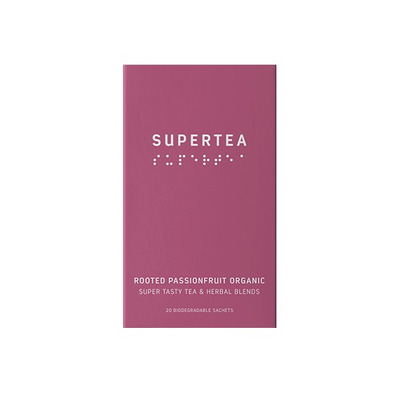 Rooted Passionfruit Organic fra Teministeriets Supertea-serie er en frisk og lækker te baseret på økologiske ingredienser og naturlige aromaer. Den indeholder blandt andet grønne teblade, citrongræs, lakrids og naturlig passionsfrugtaroma kombineret med næringsrige rødder fra gurkemeje og cikorie.