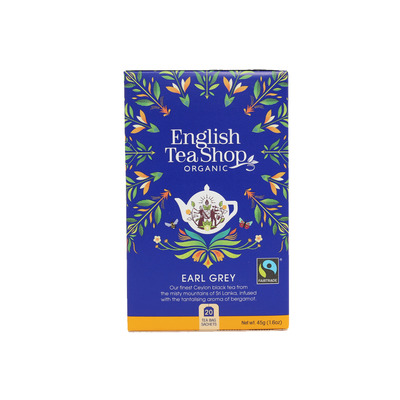 Earl Grey fra English Tea Shop er en skøn, aromatisk teblanding bestående af økologisk, sort Ceylon-te fra Fairtrade-landbrug. Den ultimative te-klassiker kendt for sin kraftfulde smag med et sofistikeret, friskt twist af bergamotte.