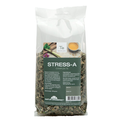 Stress-A complex fra Natur-Drogeriet er en helt naturlig te, der består af en helt speciel sammensætning af urter, som udgør en te, der hjælper dig med at få ro i kroppen. Blandingen indeholder massere af velkendte urter, der alle har gode og afslappende egenskaber for din krop. Udover at understøtte både et normalt fysisk og mentalt velbefindende, har teen også en dejlig og frisk smag med elementer af lemongræs. Teen kan sagtens drikkes af hele familien, når I har brug for, at der kommer ro på.