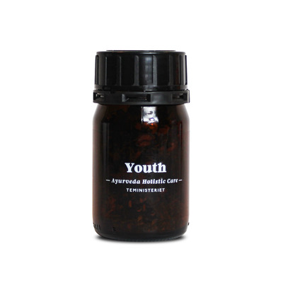 Youth fra Teministeriets Ayurveda-serie er en unik teblanding baseret på nøje udvalgte, økologiske urter sprængfyldt med vitaminer og antioxidanter. Den indeholder en kombination af brændenældeblade, lakridsrod, brombærblade, æble, hybenskal, havtorn, rødbede, persille, ingefær, rosenblade, lindeblomst og rosmarin. Teen er desuden koffeinfri, så den kan nydes på alle tider af døgnet.