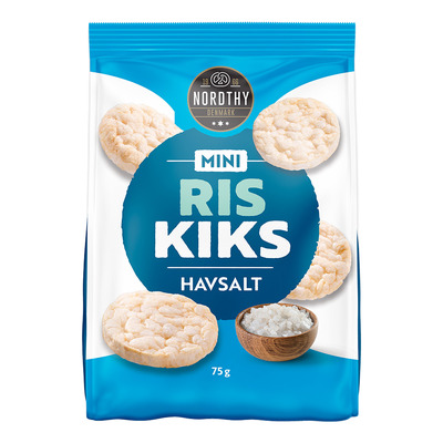 Nordthy Mini Riskiks Havsalt er sprøde, lette riskiks med en enkel smag af havsalt