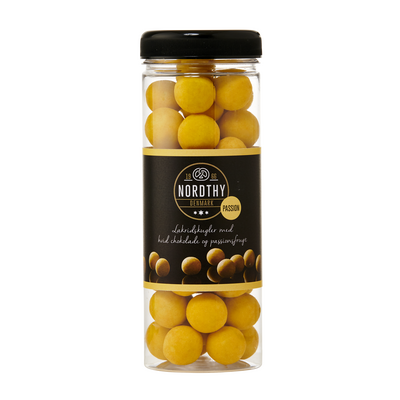 Hvis du er vild med lakrids og chokolade, er du nødt til at smage disse skønne lakridskugler fra Nordthy! Lakridskuglerne består af en blød, sød lakrids i kombination med hvid chokolade, mens hele herligheden er overtrukket med smagsrig passionsfrugtpulver, der giver et eksotisk pift. Lakridskugler er blevet meget populære, og det kan vi godt forstå - kombinationen af sød lakrids og hvid chokolade smager vidunderligt.