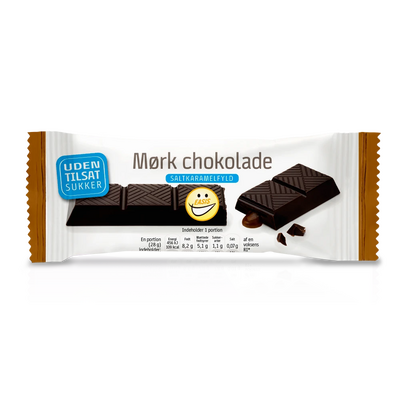 Mørk Chokoladebar med saltkaramelfyld fra Easis - en velsmagende snack uden tilsat sukker