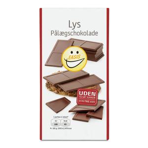 EASIS Lys pålægschokolade er til dig, der godt kan lide lækre, tykke skiver mælkechokolade på dit brød, men gerne vil spare på sukkeret.