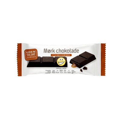 Kostfiber (oligofruktose), Kakaomasse, Kakaosmør, kostfiber (dextrin), Kostfiber (inulin), Sødestof (erythritol) (6,2%), Fedtfattigt kakaopulver, Vegetabilsk fedt (kokos), Emulgator (sojalecithin), aroma (rom), Naturlig vaniljearoma, sødestof (steviolglycosider)