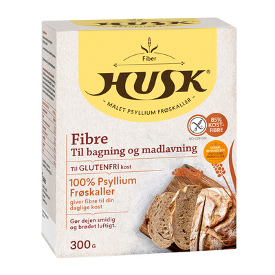 FiberHUSK er et rent naturprodukt bestående af pulveriserede loppefrøskaller. Skallerne har en særligt fugtbindende egenskab, og ved kontakt med væske suger de til sig, hvilket resulterer i en gel-konsistens, der giver fylde i din mad og sætter fordøjelsen i gang. Loppefrøskaller er egnet til at tilføre ekstra fibre til kosten og til at stimulere bevægelse i tarmen ved at holde afføringen blød, men FiberHusk er særligt udviklet til at komme i bagværk såsom brød og kager på grund af skallernes gelerende effekt. Fordi skallerne suger så meget vand, er de nemlig rigtig gode til at samle dej, så dit brød får en elastisk masse og en god mæthedsfaktor.