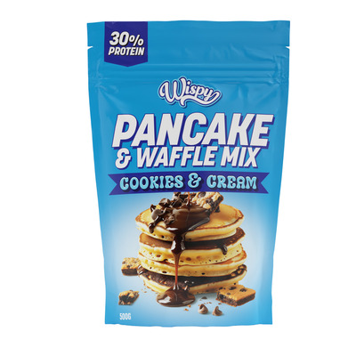 Nyd lækre proteinrige pandekager og vafler med Wispy Pancake & Waffle Mix, med smag af cookies & cream