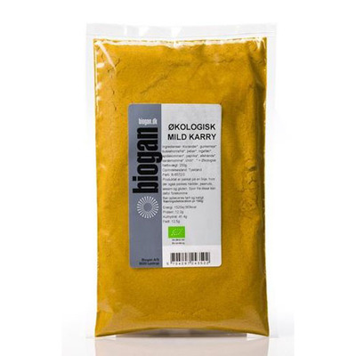 Karry stammer oprindeligt fra Indien, og omtales ofte som et krydderi, hvilket faktisk ikke er den helt rigtige betegnelse. Karry er nemlig et blandingsprodukt, som består af 10-15 forskellige smagfulde krydderier, der alle er med til at give masser af smag og kant til dine retter. Én af ingredienserne i karry er er gurkemeje, som giver den skønne gule farve. Derudover finder du også koriander, spidskommen, ingefær i blandingen. Biogans karryblanding er helt økologisk og er ikke stærk, men har i stedet en mild og afbalanceret smag.
