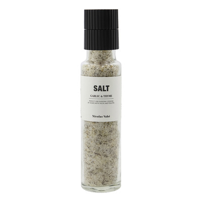 Salt er uundværligt i alle køkkener, men hvorfor ikke pifte smagen lidt op og gøre din ret endnu mere lækker? Med denne saltblanding fra Nicolas Vahé tilsat hvidløg og timian får din mad lidt ekstra smag, som passer i de fleste dagligdags retter samt super godt til pasta og fjerkræ. Den dekorative saltkværn er super fin at have stående fremme på bordet, så du altid har saltet lige ved hånden.