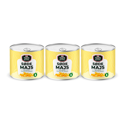 Taste of Nature Søde Majs er en 3-pak med dåsemajs, der både er søde og saftige