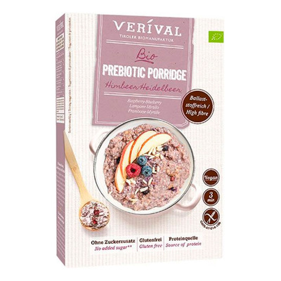 Verival Grød Prebiotic er økologisk morgenmad med hindbær, blåbær og naturlige præbiotiske fibre
