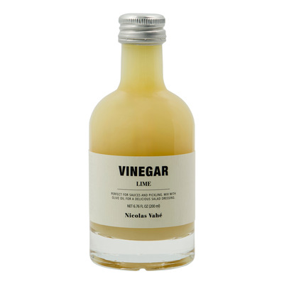 Nicolas Vahé Vinegar Lime er produceret i Europa og kommer i en dekorativ glasflaske, som passer flot i køkkenet. Den har en afbalanceret syrlighed og er nem at dosere. Brug den i det salte køkken eller eksperimentér i søde opskrifter, hvor syre kan balancere smagen.