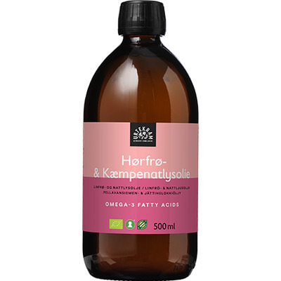 Hørfrø- og kæmpenatlysolie. Koldpressede olier fra økologiske hørfrø og økologisk kæmpenatlysolie. Omega-3 er et af sundhedstrendens buzzwords og denne olie har et højt indholde af omega-3-fedtsyrer. Bland den for eksempel i den klassiske morgen-smoothies, over frugtsalat blandet med lidt citronsaft og i dressinger. Kan også drikkes i et glas juice. Olien bør ikke opvarmes.