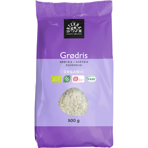 Urtekram Økologiske Grødris er korte, runde ris, der koger cremede og bløde - ideelle til den klassiske risengrød, risalamande og andre varme desserter. Risene har et naturligt højt indhold af stivelse, hvilket giver den ønskede fyldige og sammenhængende konsistens ved kogning.