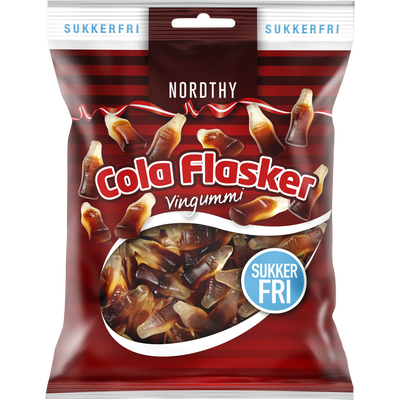 Vingummi er et hit blandt mange slikglade børn og voksne, så denne pose med colaflasker fra Nordthy bliver med garanti et hit. Colaflaskerne har den dejligste smag af cola, som du måske kender fra sodavand. Vingummien er sukkerfri, hvilket gør denne slikpose særligt velegnet til, hvis du ønsker at skære ned på sukkerindtaget for dig selv eller for dine børn - vingummien er kun sødet med sødemiddel!