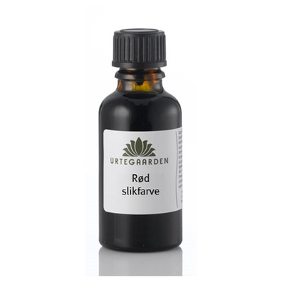 Urtegaarden Rød Slikfarve er naturlig vandopløselig farve udvundet af rødbeder - Brug den evt. til bolsjer eller pynt til kager.