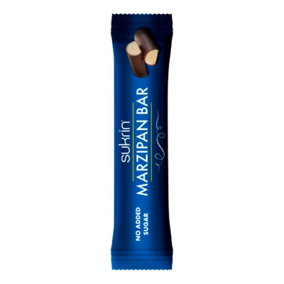 Sukrin Marcipan Bar er en velsmagende snack uden tilsat sukker, lavet af SukrinMarcipan og overtrukket med mørk SukrinChokolade. Den er naturligt sødet med Sukrin og stevia og indeholder kun 1 gram sukkerarter pr. bar. Marcipanbaren er et godt alternativ til klassisk konfekt for dig, der ønsker færre sukkerarter uden at gå på kompromis med smagen.