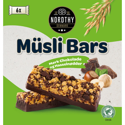Müslibarer fra Nordthy med dejlig smag af hasselnød og mørk chokolade