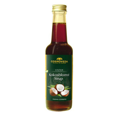 Cosmoveda’s Kokosblomst sirup består af saft udvundet fra økologiske kokosblomster. Den aromatiske, mørke sirup kan anvendes til at søde dine desserter, drikke og madretter. Kokossiruppen kommer fra Cosmoveda’s økologiske projekt i Sri Lanka.
