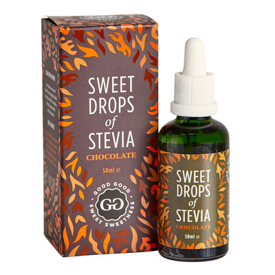 Good Good Stevia Dråber med chokolade er et produkt, der fungerer som en erstatning for sukker i flydende form med den lækre smag af chokolade. Produktet er produceret af naturlig stevia ekstrakt fra stevia bladet. Stevia er 100-300 gange sødere end sukker, men uden kalorierne. Derfor er steviadråberne perfekte til den søde tand.