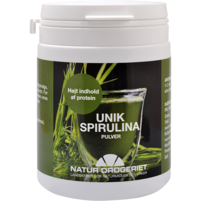 Den blågrønne Spirulina Plantensis er en mikroalge, der vokser vildt i naturen. Algerne består af spiralformede kæder, som aktiveres ved kontakt med væske. Natur-Drogeriets Spirulina dyrkes kun i kontrollerede miljøer, således at kvaliteten af produktet kan sikres fuldkomment. På denne måde sikres det bedste naturlige produkt med den mest ensartede høje kvalitet.
