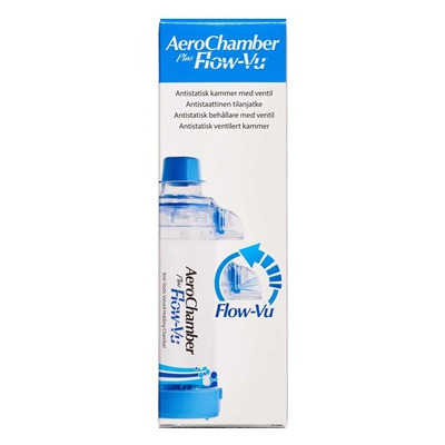 AeroChamber Plus Flow-Vu er en lille, handy spacer, som kan anvendes til alle typer inhalationssprays. Den er let at anvende og desuden udstyret med et antistatisk kammer, som sikrer, at medicinen leveres til lungerne og ikke bliver siddende på spacerens vægge. Denne variant er velegnet til voksne samt børn fra ca. 5 år, som er i stand til at lukke læberne tæt omkring mundstykket og trække vejret gennem spaceren.
