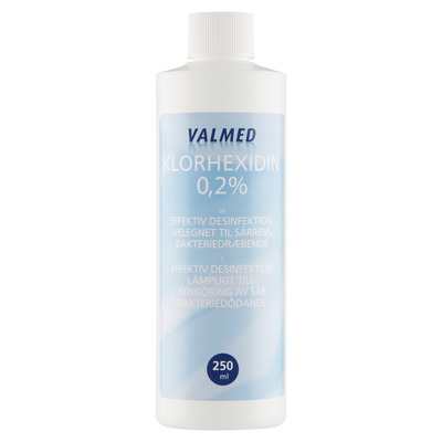 Valmed Klorhexidin 0,2% er et effektivt desinficerende og bakteriedræbende middel.